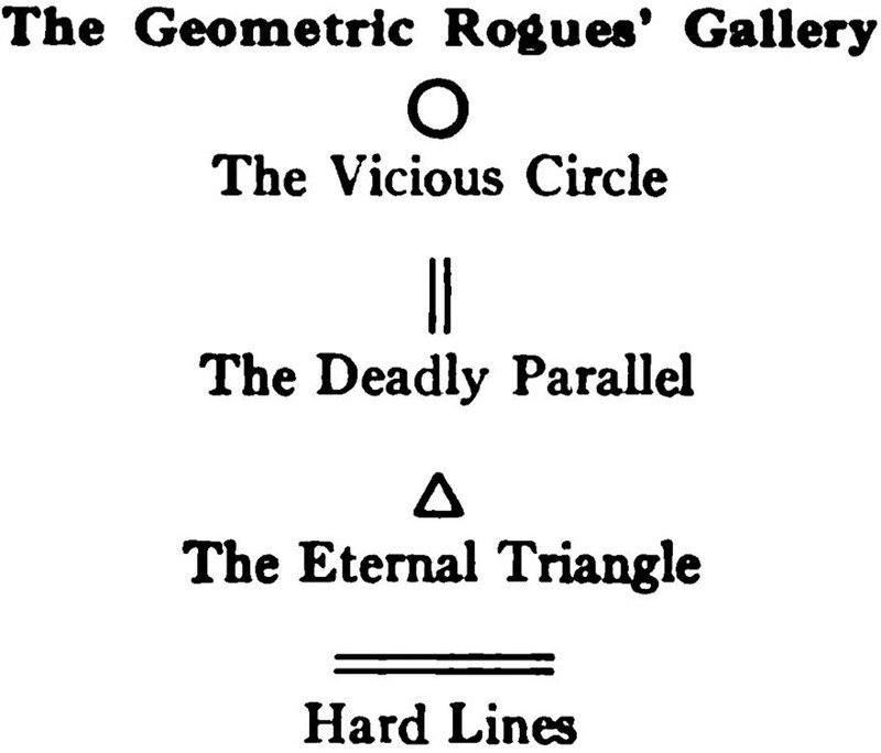 The geometric rogues' gallery.  From The Judge, 1921.