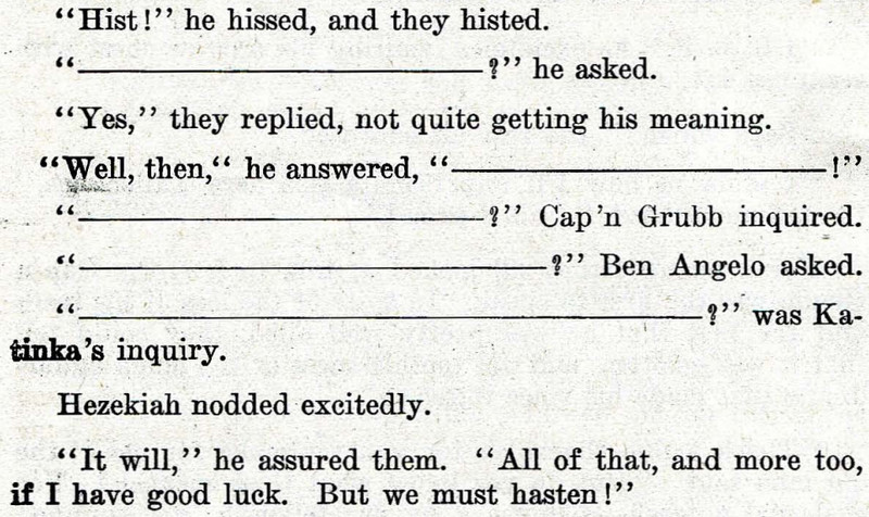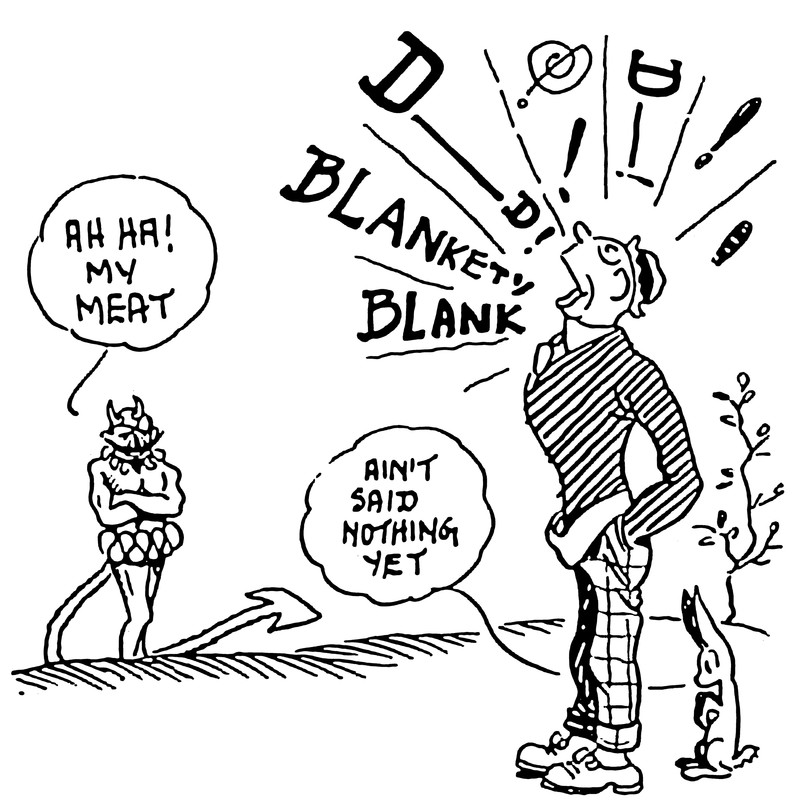 Interesting that oaths in print seem prone to self-censorship. In this 1921 example, the expression is “Blowing blizzards!” We're now prepared to say that an expletive’s very long dash is a rapier, and rather than diminishing any impact, it thrusts the point home.