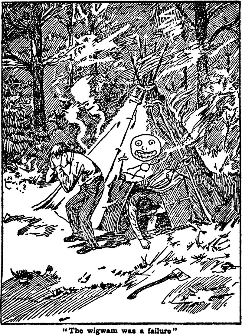 "The wigwam was a failure," from Two Little Savages by Ernest Thompson Seton, 1911.