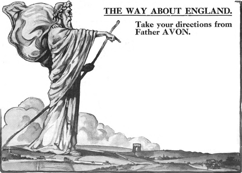 Here is revealed how we navigate England when the GPS device is on the blink.  The text reads, "The way about England.  Take your directions from Father Avon."  From an ad in The Sketch, 1911.