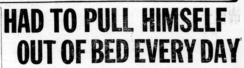 "Had to pull himself out of bed every day."  From the Duluth Herald, 1920.