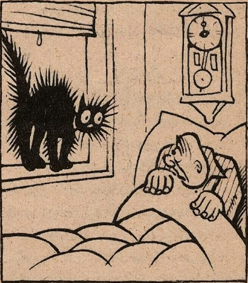 #vintage illustration #illustration #fear of cats #cat phobia #felinophobia #ailurophobia #elurophobia #black cats #art