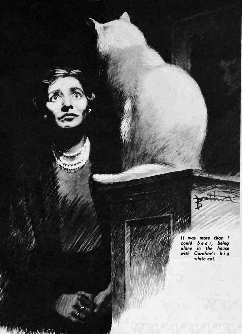 It was more than she could bear, being alone in the house with the big white cat.  From The Australian Women's Weekly, 1957.