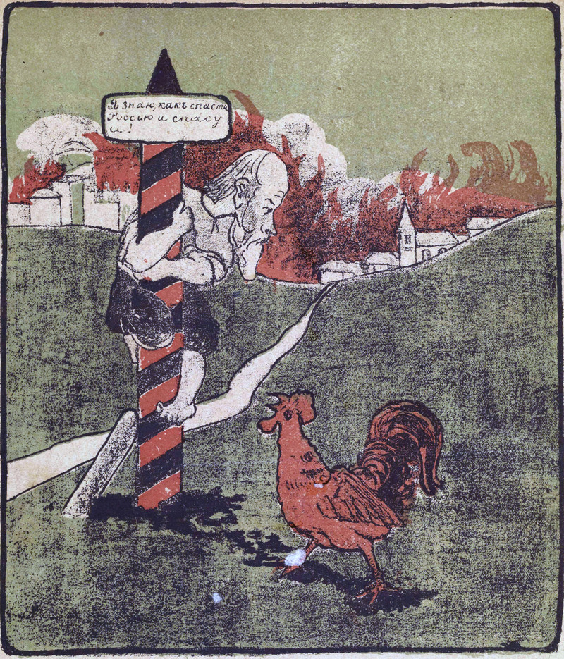A fear of roosters, alektorophobia.  From Shpilka, 1906.