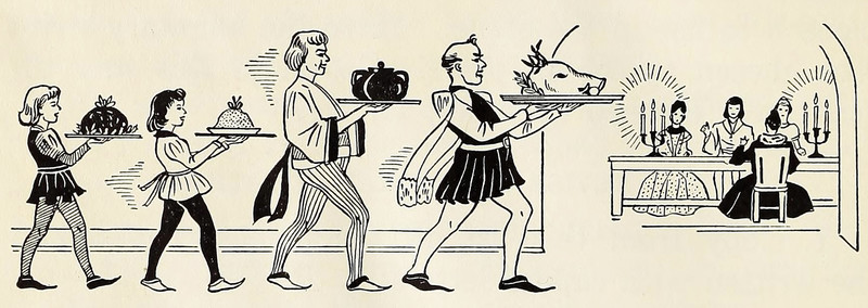 "They seldom had anything on the Table except Chicken with Gravy, Salt Rising Bread, Milk, Seven or Eight Vegetables, Crulls, Cookies, Apple Butter, Whortleberry Pie, Light Biscuit, Spare Ribs, Pig's Feet, Hickory Nut Cake and Such Like." From