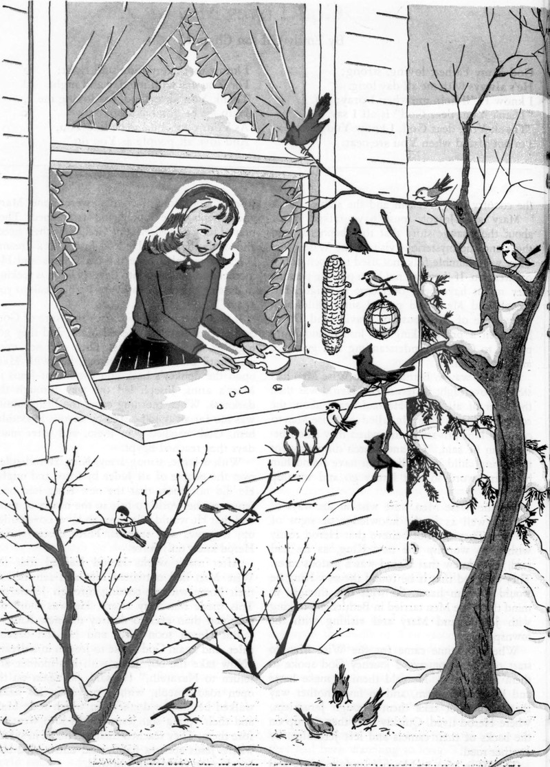 #vintage illustration #winter #bird #1940s #illustration #feed the birds
