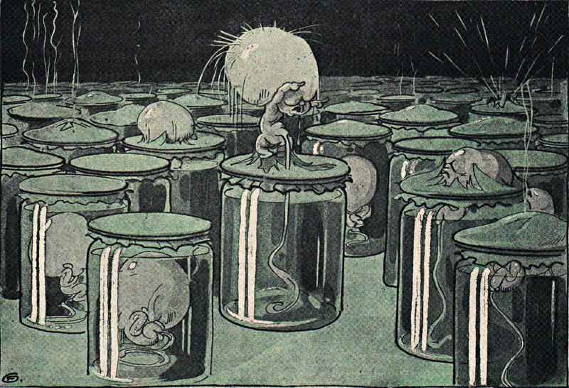 This is the first bar graph we've enountered that depicts small counts as fetuses in jars and mummified preemies. (Shivers!) From Christianiæ by Olaf Andreas Colbjörnsen Abildgaard, 1898.