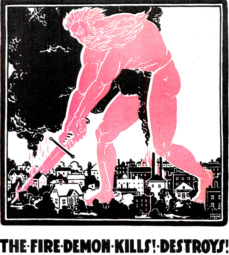 The fire demon kills!  Destroys!  From Popular Mechanics, 1923.