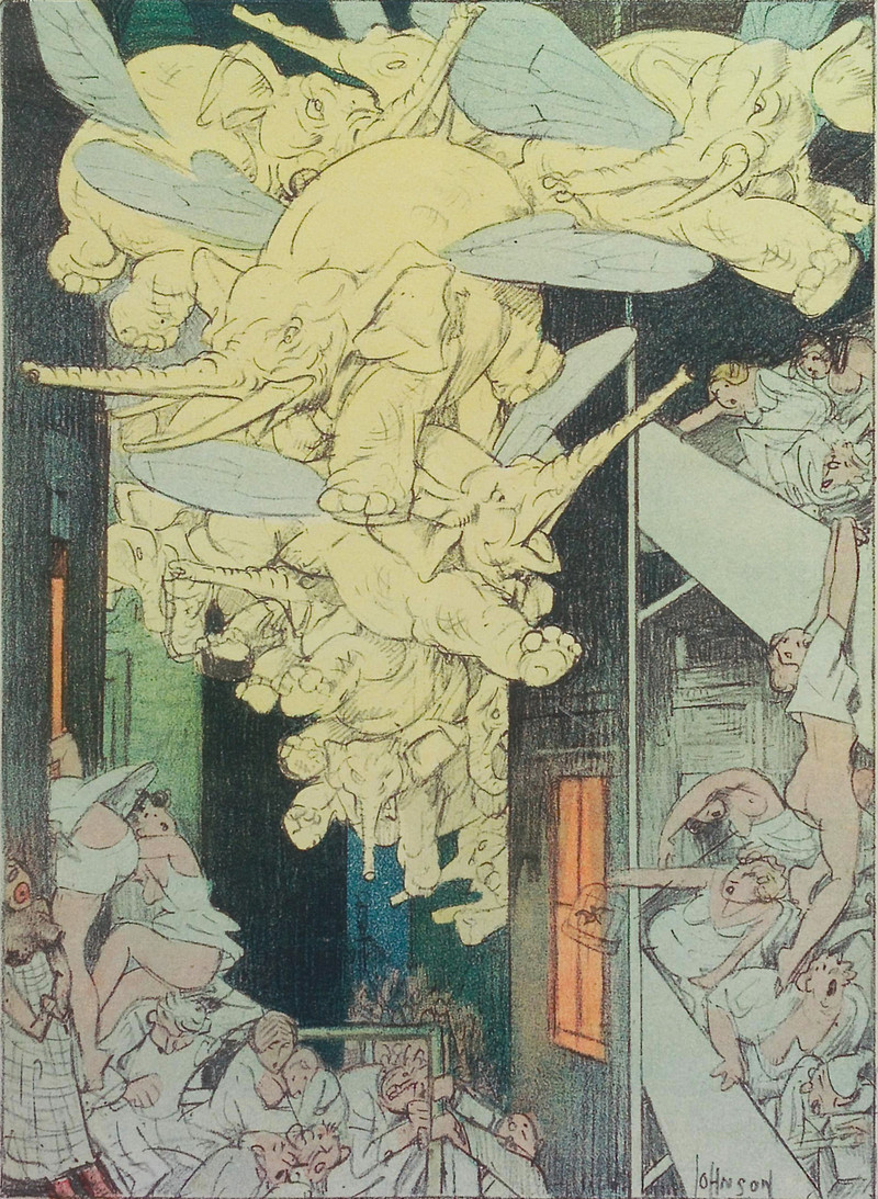 An illustration from a 1910 issue of Hampton's magazine. The caption reads: "The discoverer of alcohol saw things he never dreamed of."