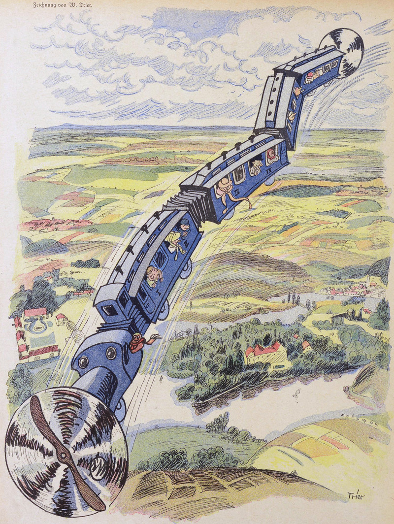 Here's a flying train by Trier, in Lustige Blätter, 1919.