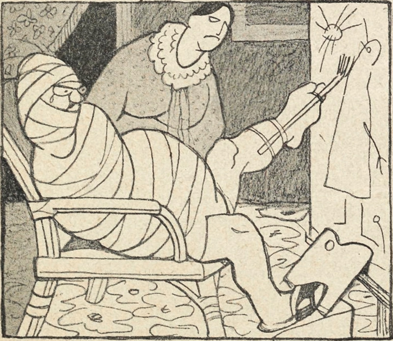 #mummy #vintage illustration #artist #painting #foot painting #bandaged #using the feet