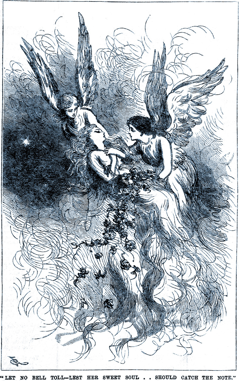 "Let no bell toll—lest her sweet soul should catch the note" and drift into the afterlife.  From Dicks' English Library of Standard Works, 1884.