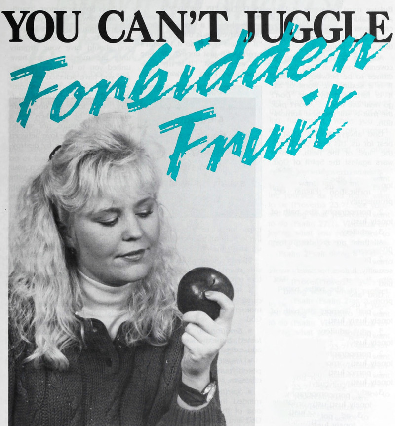 "You can't juggle forbidden fruit."  From Lighted Pathway, 1990.