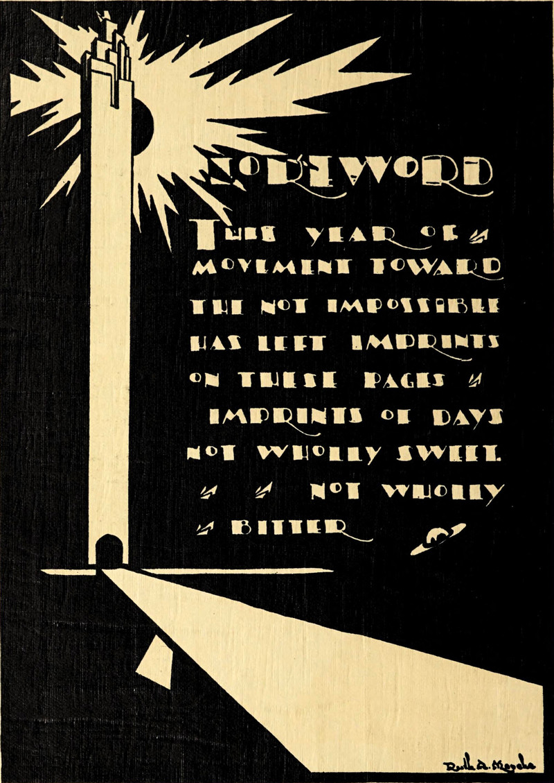 "This year of movement toward the not impossible has left imprints on these pages. Imprints of days not wholly sweet, not wholly bitter." From Indiana State University's 1929 yearbook.