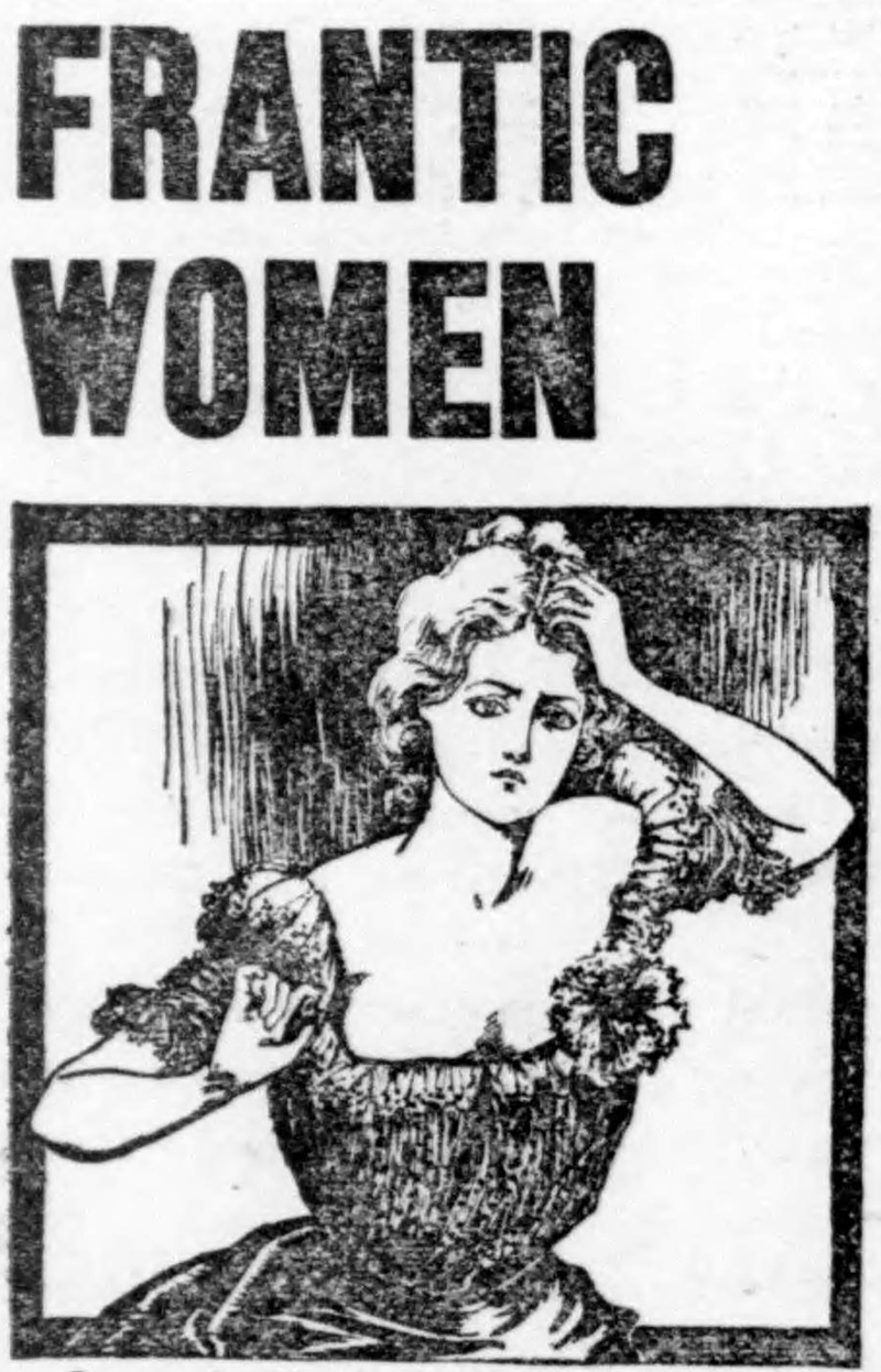 "Frantic women."  From the Duluth Evening Herald, 1908.