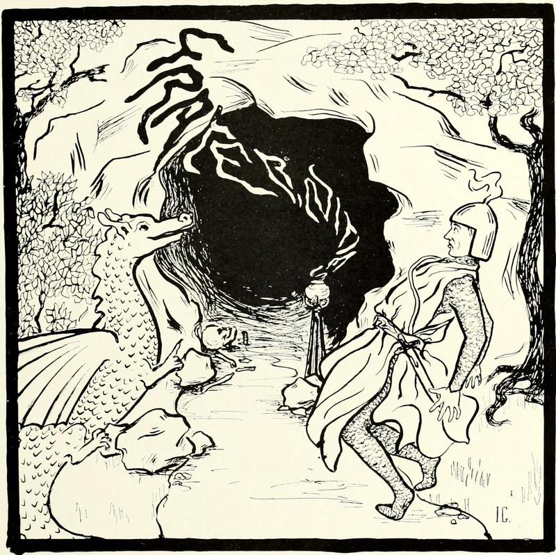 #vintage illustration #dragon #knight #vintage yearbook #cave #yearbook #fraternities