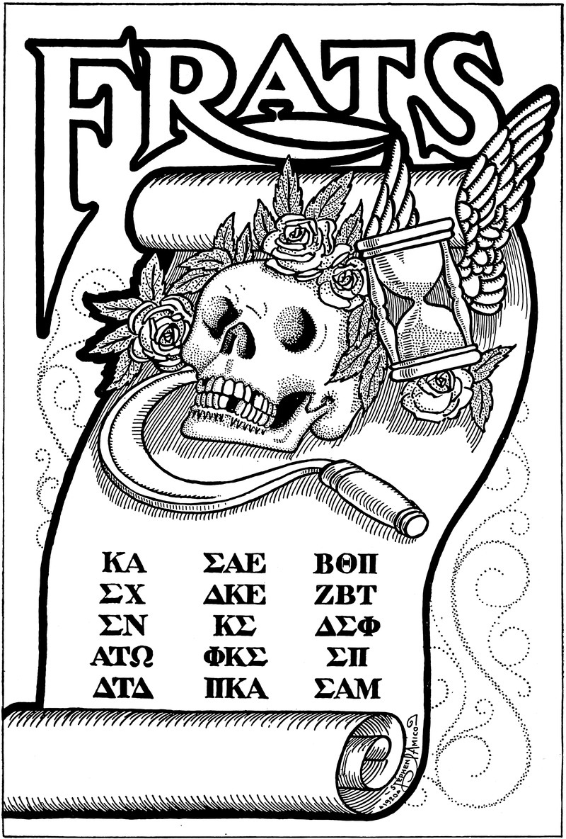 #vintage illustration #vintage yearbook #yearbook #fraternities #illustration