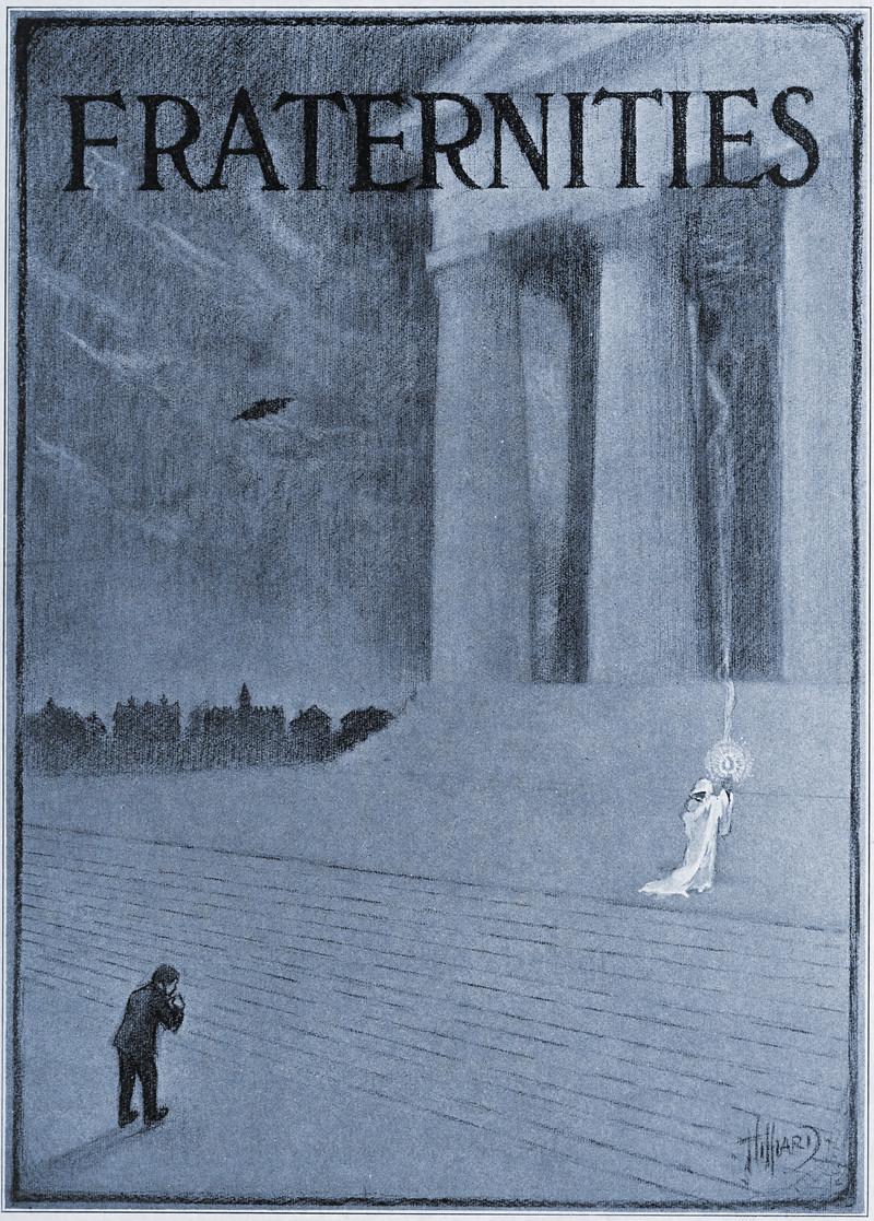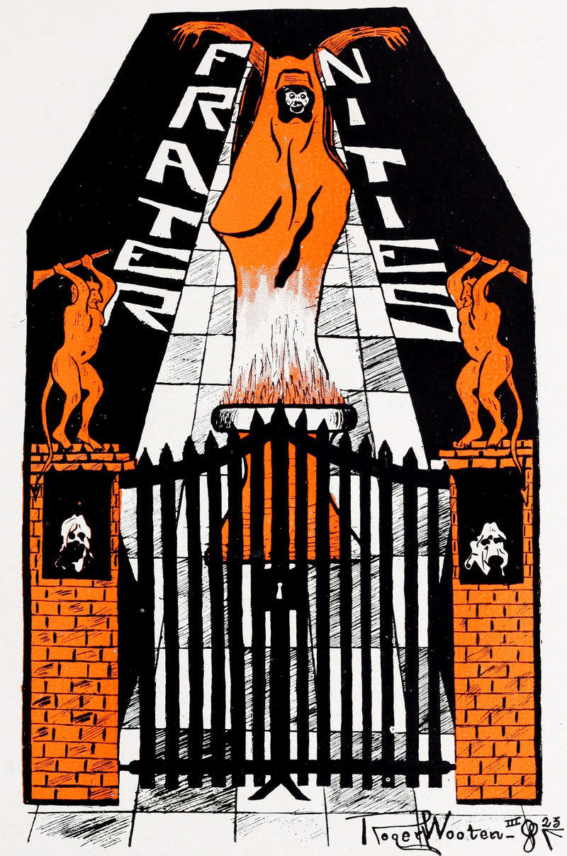#vintage illustration #demon #fraternity #vintage yearbook #yearbook #secret society #gate #1900s #illustration