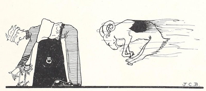 #vintage illustration #goat #animal attack #fraternity #vintage yearbook #yearbook #hazing #illustration #1910s