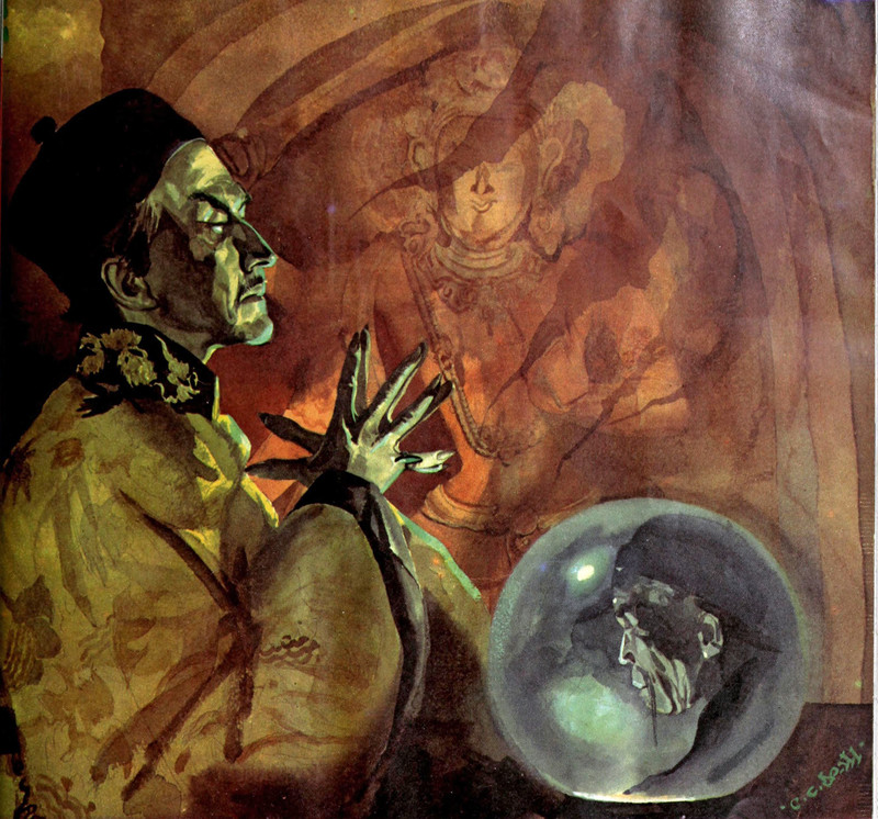 #vintage illustration #crystal ball #chinese #fu manchu