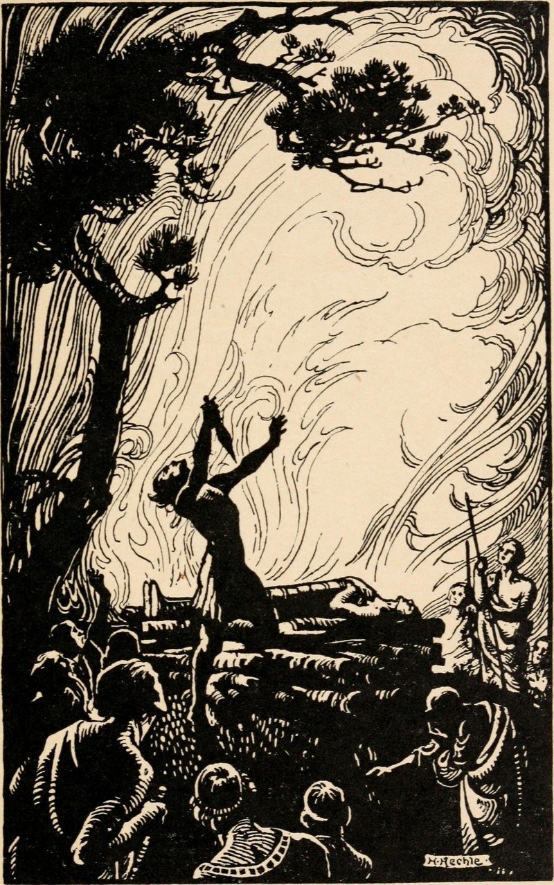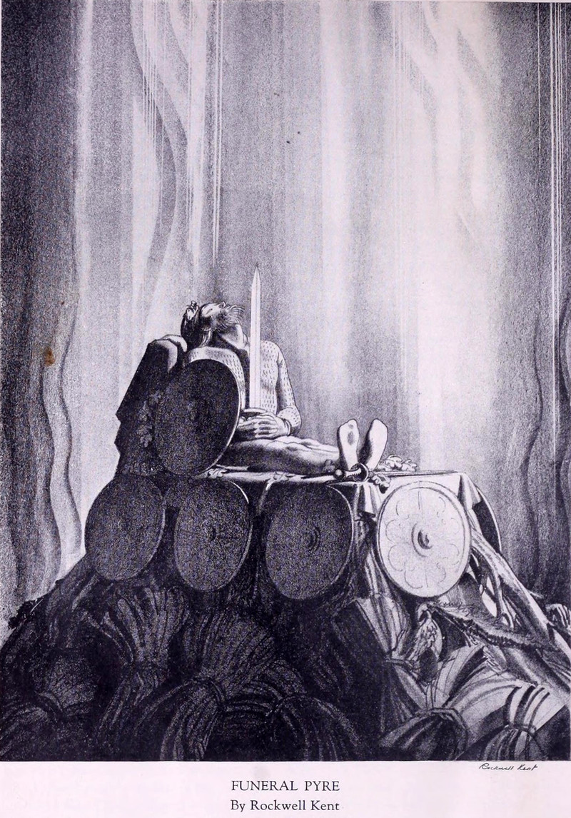 #vintage illustration #death #sword #funeral pyre #rockwell kent