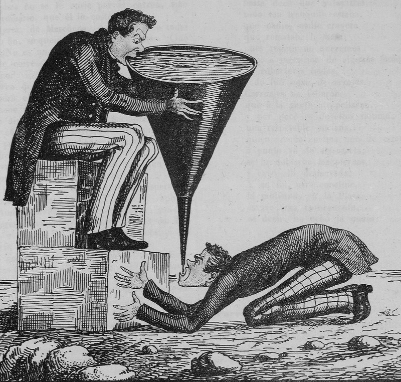 #vintage illustration #demon #hell #illustration #funnel #forced to drink #force-feeding