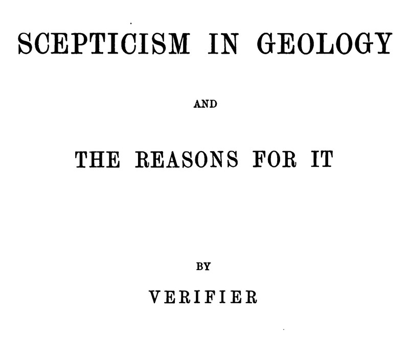 A true skeptic is skeptical even of the rock-solid. Note that the author of this book opted for anonymity, for Big Science bullies were as bad in 1877 as they are today. From Skepticism in Geology by Verifier, 1877.