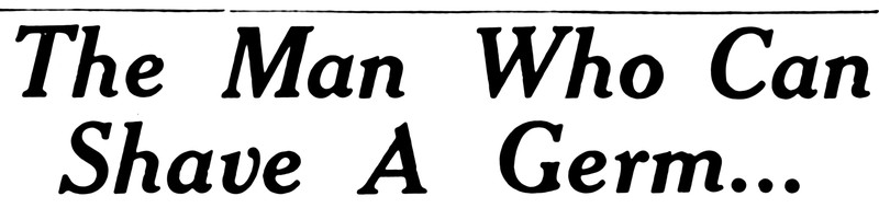 "The man who can shave a germ..."  From the Bombay Sunday Chronicle, 1947.