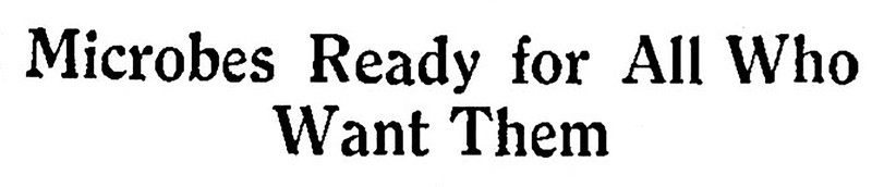 "Microbes ready for all who want them."  From The Children's Newspaper, 1920.
