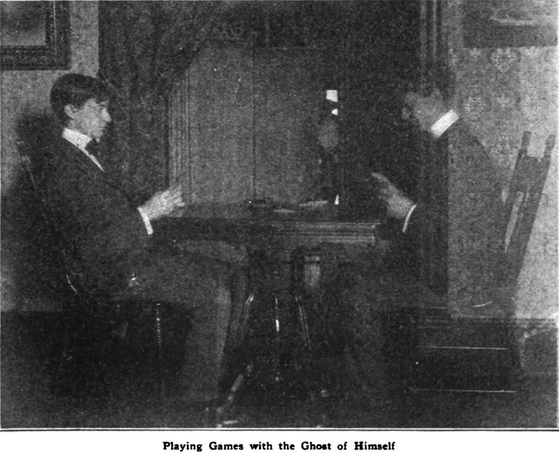 "Playing games with the ghost of himself."  From Popular Mechanics, 1909.