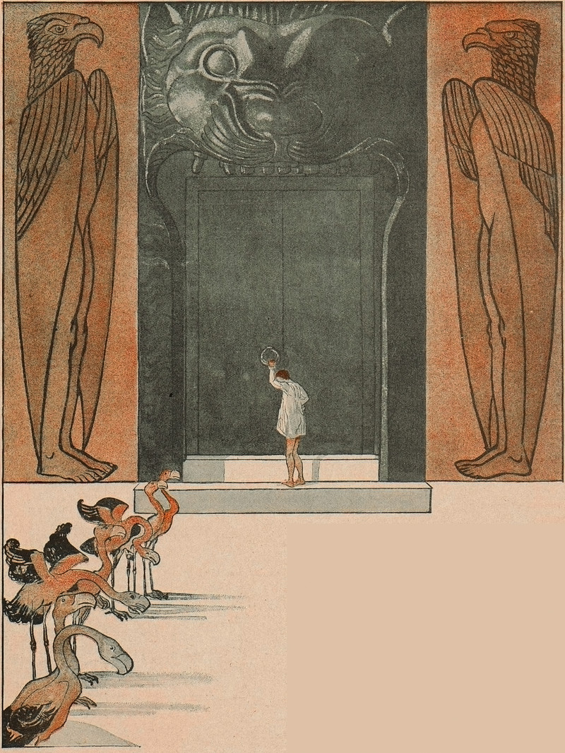 #vintage illustration #illustration #flamingo #giant door #art
