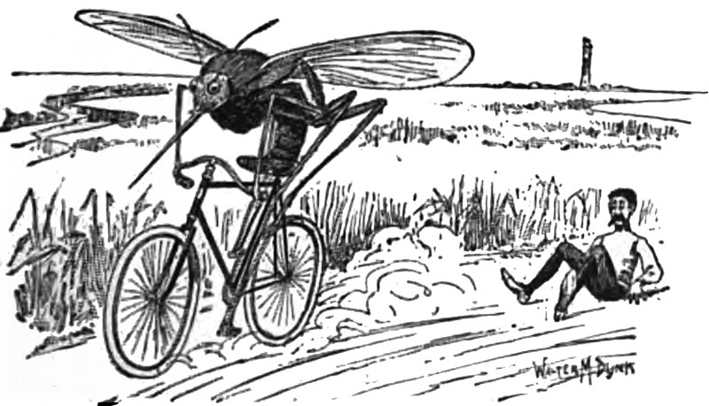 #vintage illustration #mosquito #cycling #giant insect #giant mosquito #bicycle thief