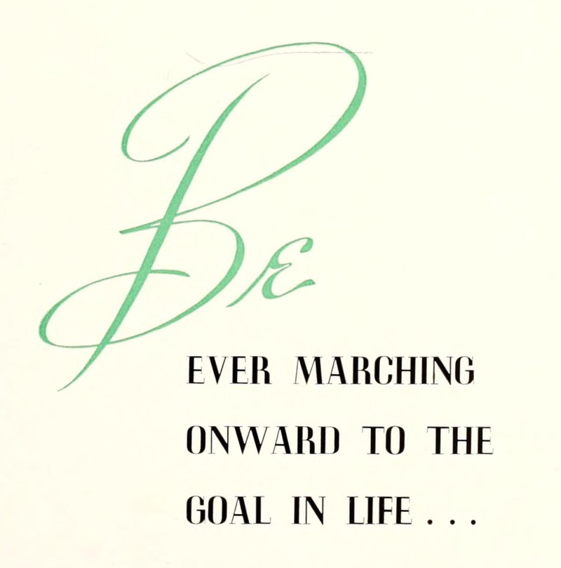 "Be ever marching onward to the goal in life."  From Peace College's 1952 yearbook.