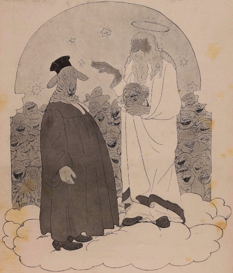 #vintage illustration #practical joke #animal headed #god #illustration #god has a sense of humor #art