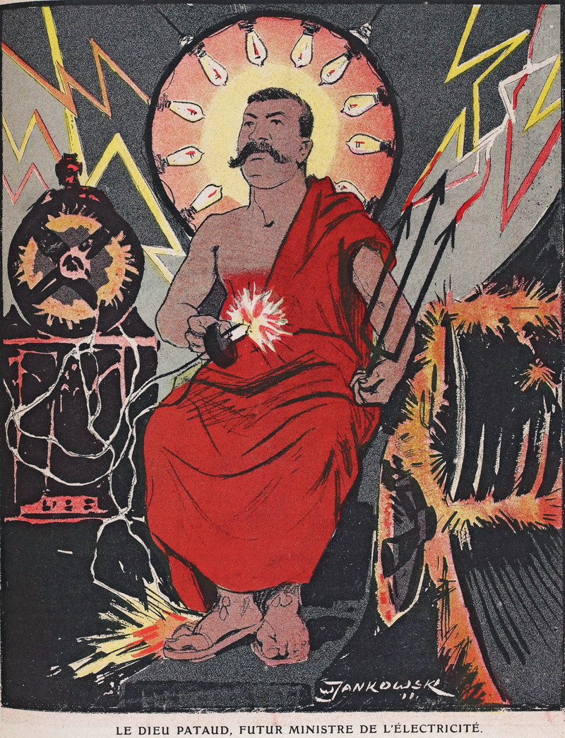 The electric deity.  From L'Assiette au Beurre, 1911.