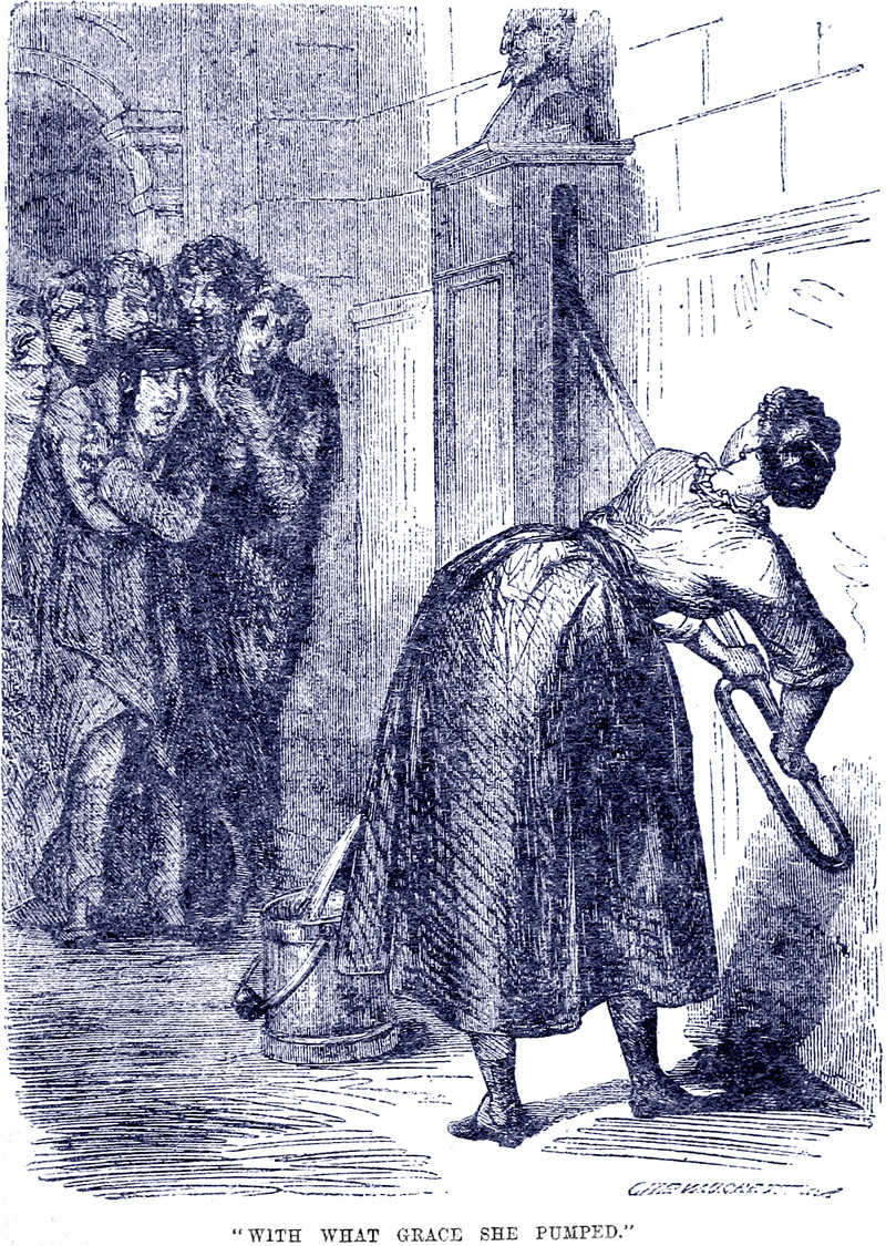 "With what grace she pumped," from Dicks' English Library of Standard Works, 1884.