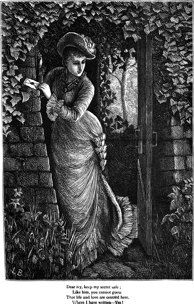 Over a century before Motown "heard it through the grapevine," climbing and trailing plants of the vine family actually kept secrets instead of spreading them. The caption of this illustration makes it all clear: "Dear ivy, keep my secret safe; / Like him, you cannot guess / That life and love are centered here, / Where I have written—Yes!" (London Society, 1877).