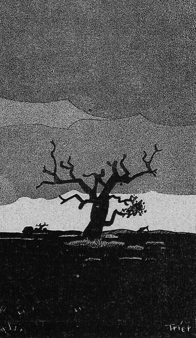 #vintage illustration #silhouette #winter #bare tree #tree #gray day