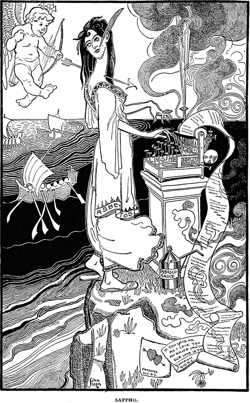 Sappho from Comic History of Greece by Charles M. Snyder, 1898.