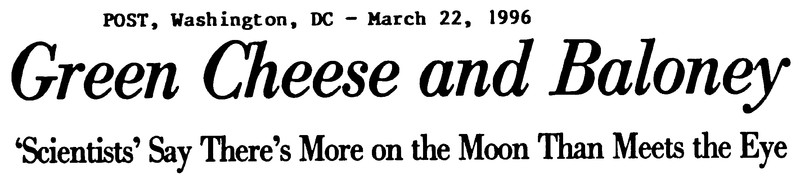 Not merely green cheese -- the moon is also made of baloney.  Via UFO Newsclipping Service, 1996.