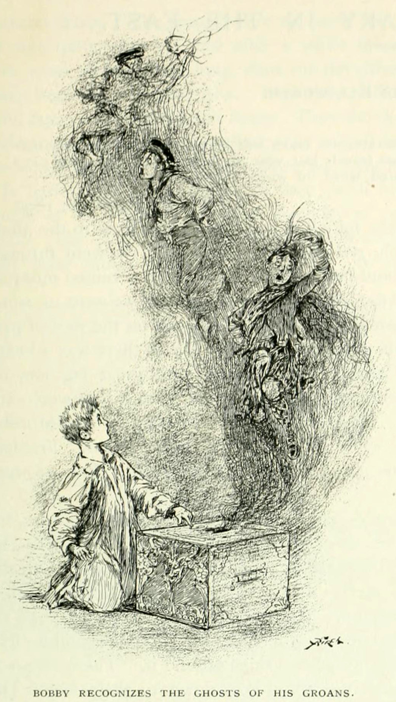 "Bobby recognizes the ghosts of his groans." From St. Nicholas, 1891.