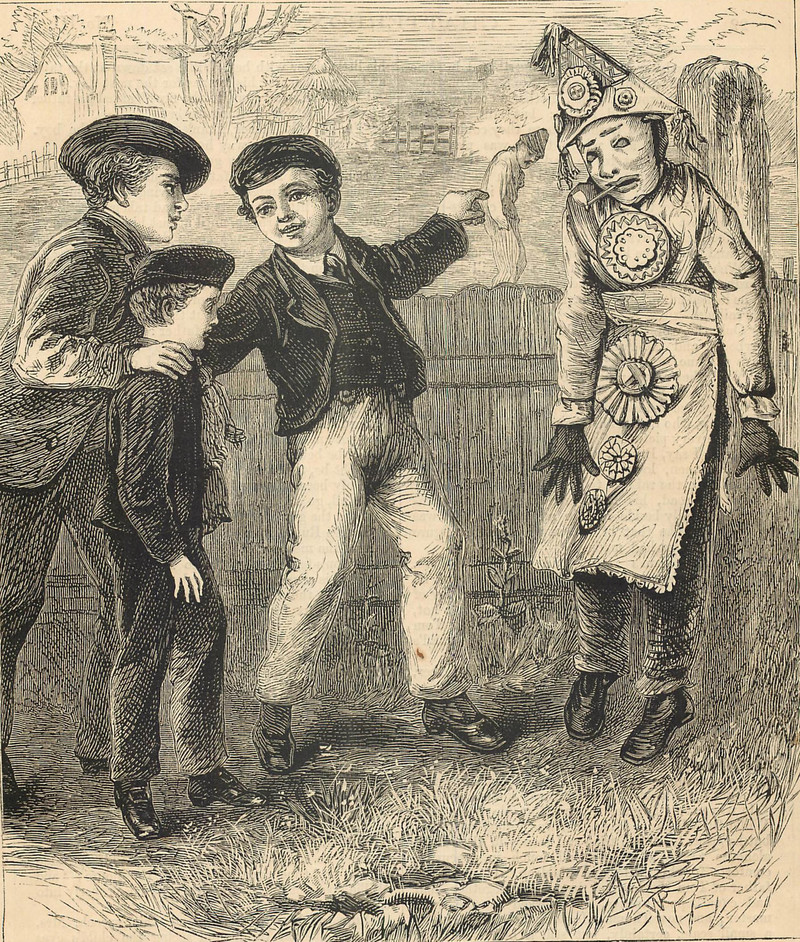 Here's a precursor to the Guy Fawkes mask -- an Aleut mortuary mask, from the Annual Report of the Bureau of Ethnology to the Secretary of the Smithsonian, 1884.