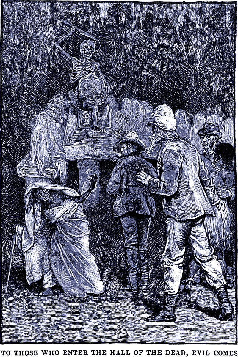 "To those who enter the hall of the dead, evil comes."  From King Solomon's Mines by Henry Rider Haggard, 1891.