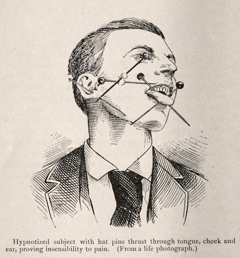 #vintage illustration #hypnotism #1890s #hypnosis #piercing #hat pin