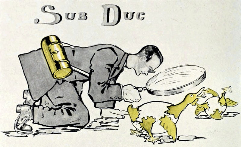 #vintage illustration #vintage yearbook #yearbook #duck #magnifying glass #hatching #1900s #egg #illustration