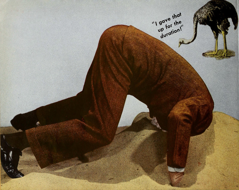 #vintage ad #ostrich #1940s #head in the sand #denial #ad