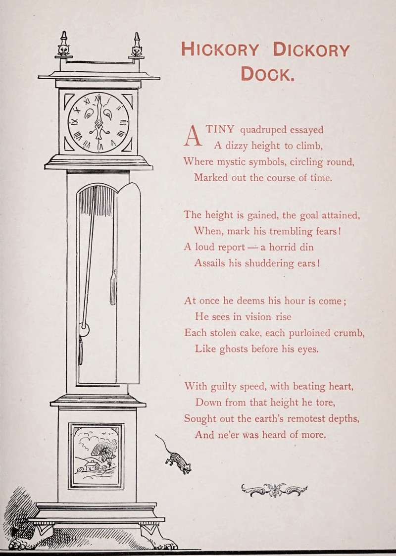Few ever bother to ask how anyone knew for certain that the mouse ran up the clock in the old nursery rhyme. It turns out that there were three witnesses. From Mother Goose Secrets by Barbara Webb Bourjaily, 1925.