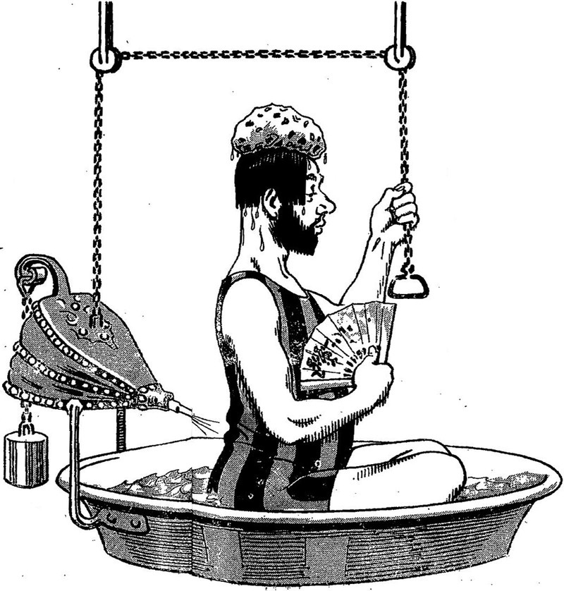 #vintage illustration #beard #man bathing #bathtub #hot day #man in a tub #cooling off #tub