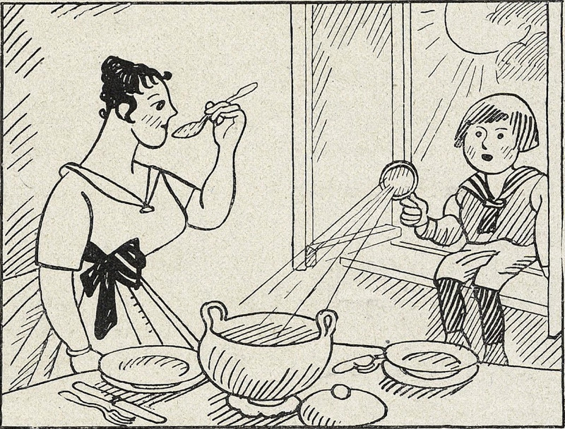 #vintage illustration #sun #magnifying glass #hot soup #1910s