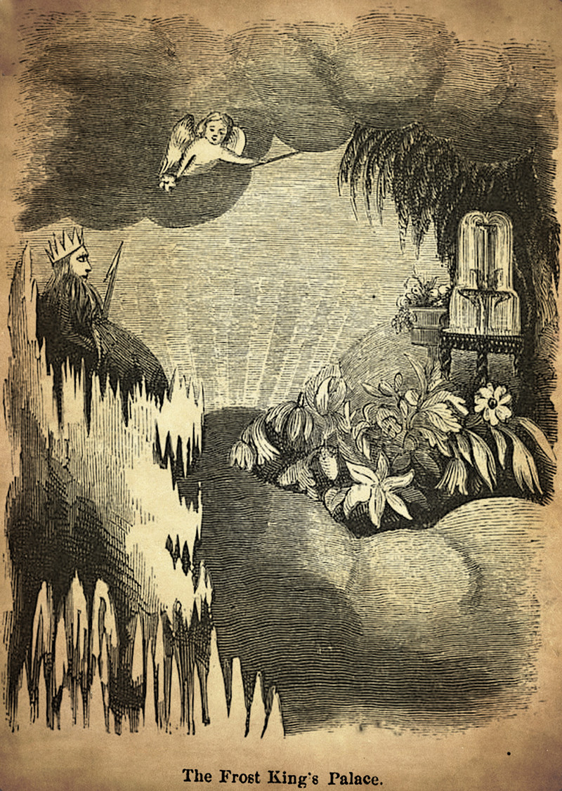 "The Frost King's palace."  From Flower Fables by Louisa May Alcott, 1855.